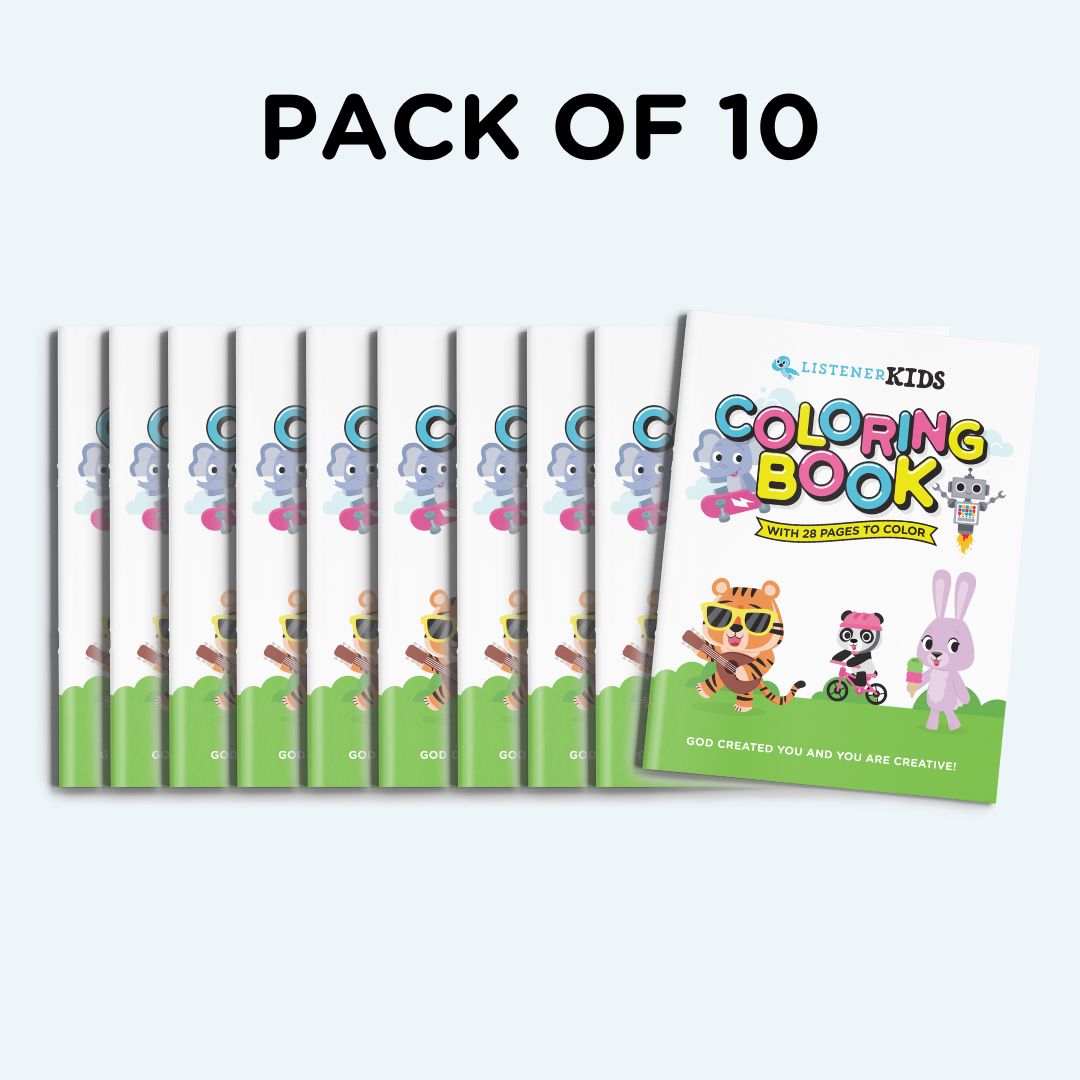Pack of (10) Listener Kids Coloring Books. Perfect for classrooms and churches.